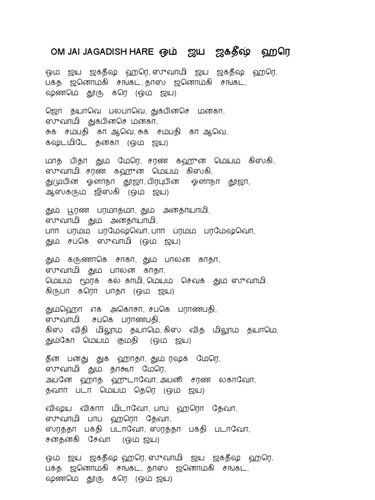 Om Jai Jagdish Hare Aarti Lyrics 2020. This aarti is partially inspired by the. By pressing the download button your PDF file will be.