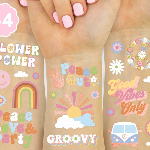 Groovy 70s Temporary Tattoos 48 Glitter Styles Flower Etsy